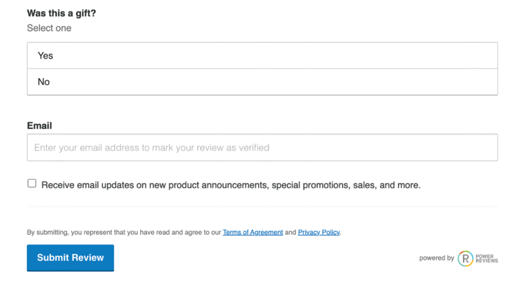 There are some instances where it makes sense to collect data in your review collection form that won’t be included in your review display–but will be leveraged internally. For example, you may want to include a newsletter opt-in form to your review collection. It’s a great way to grow your email list, with little effort.