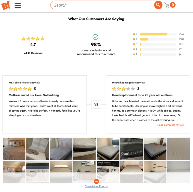 Consumers know that a single product can’t be all things to all people. So when they see all glowing reviews for a product, it makes them suspicious. Of course, it’s important to have a moderation process in place that flags fraudulent or inappropriate reviews. But such a process shouldn’t suppress reviews simply because they’re negative.