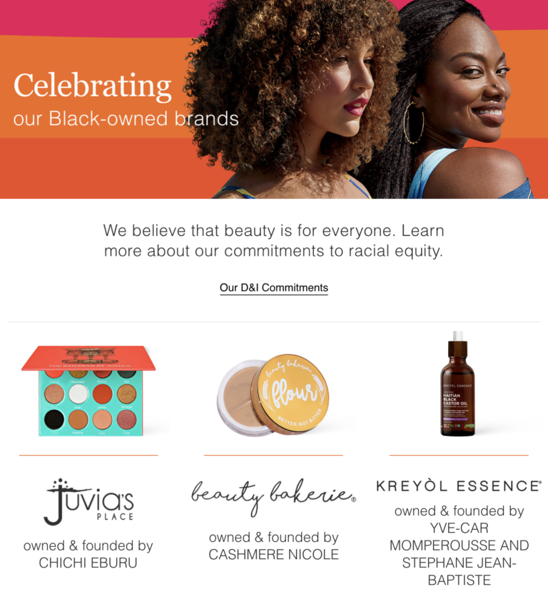 Showcase what’s unique about your brand or products so consumers can quickly determine whether it aligns with their values. For example, a beauty retailer might add sections to its website that make it easy for shoppers to find products that are from Black-owned brands, as well as those that are clean and vegan.