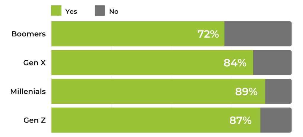 But the majority (83%) of online grocery shoppers are also open to purchasing products they’ve never tried before. Millennials (89%) are the generation most likely to try new products when shopping online for groceries, and Baby Boomers (72%) are the least likely.