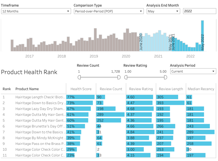Easily compare sentiment, mentions and star rating at the product level