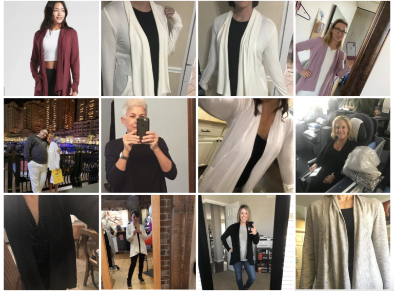 For example, someone considering this cardigan might check out the photos from previous customers and see one styled with a particular shirt. So, they add both items to their cart.
