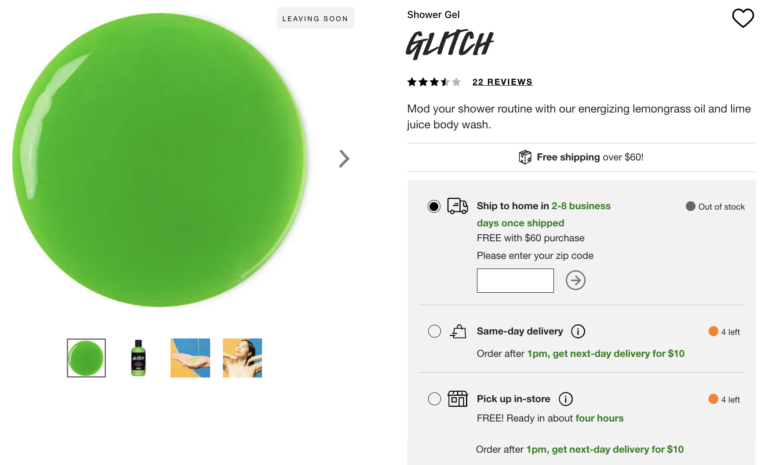 This product page on a beauty brand’s website is another great example of clear shipping and returns information. Visitors can input their zip code and get an exact date of when they can expect the product to arrive.