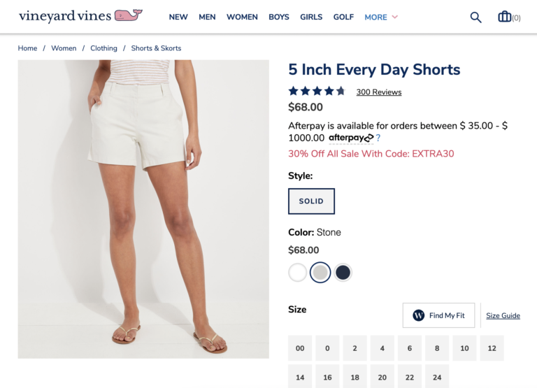 For example, this apparel page includes a “fit & sizing” section to provide details about how the item is intended to fit.