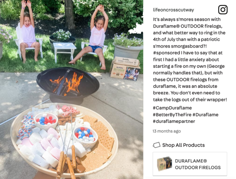 It can be helpful to be specific with this (e.g. #BrandNameLove vs. #OOTD), as that ensures you generate more relevant content that actually features your products. For example, Duraflame uses the hashtag #BetterByTheFire: