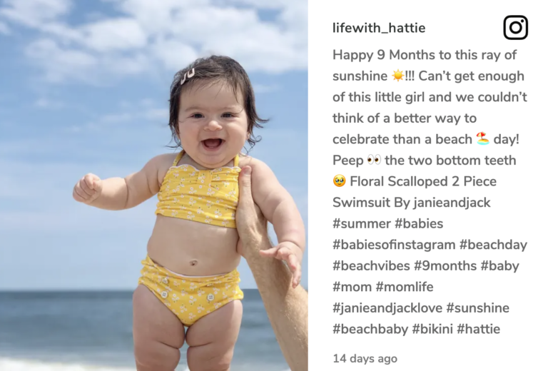 Always be sure to attribute your customers’ content to them, such as linking to their Instagram page or including a caption like “Photo courtesy of [insert Instagram handle]. Here’s an example from Janie and Jack: