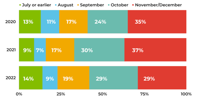 Here’s a snapshot of when consumers will start checking off their lists, where they’ll shop, how much they’ll spend, and what will fuel their purchase decisions, according to 12,866 U.S. shoppers.
