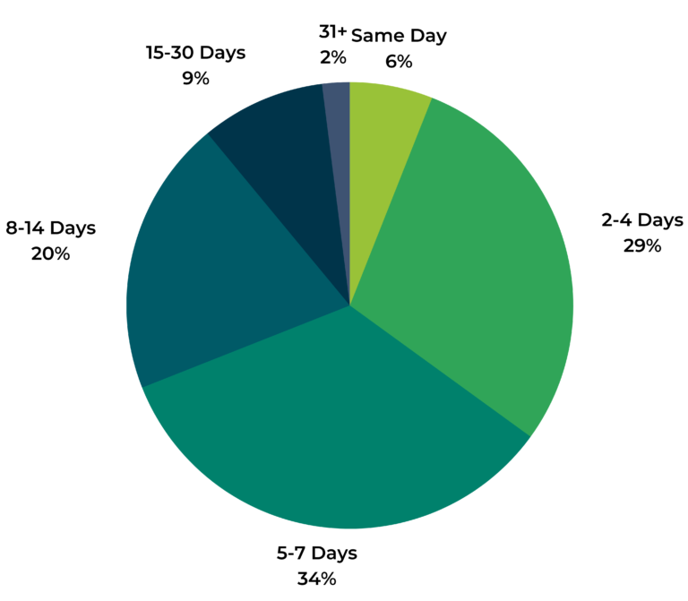 At what point in time are consumers willing to provide a rating and review for a product they purchased? This year, the greatest portion – 34% – say they’ll provide a review within five to seven days of first using or receiving an item.