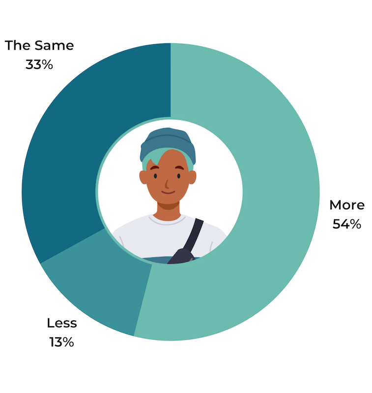 Younger consumers are more likely to indicate they’ll increase their holiday spending. 58% of Gen Z shoppers and 39% of Millennials will increase the amount they spend this holiday season, compared to 29% of Gen X’ers and 24% of Boomers.