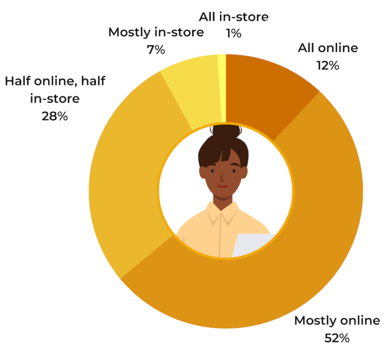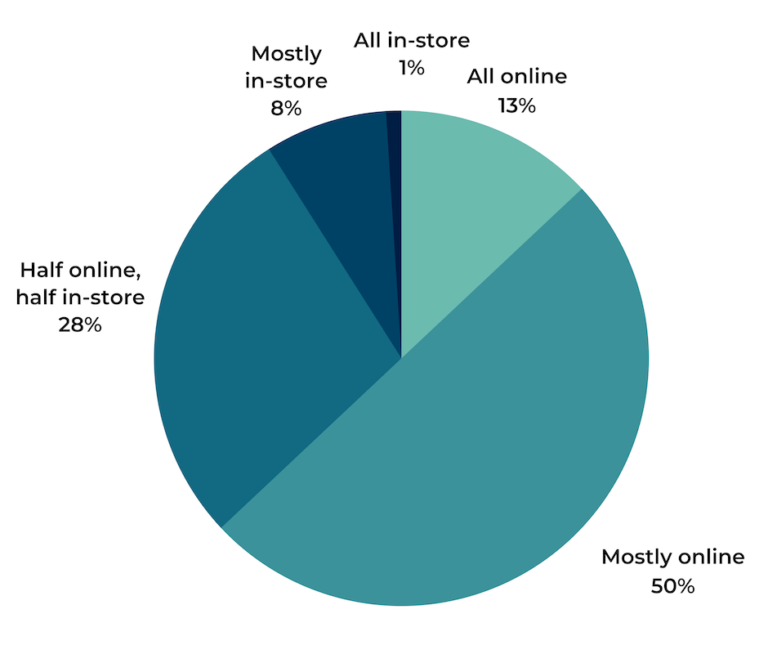 Just over a quarter (28%) will do half of their holiday shopping online, and half in-store. A mere 9% of shoppers plan to do most or all of their holiday shopping at physical store locations.
