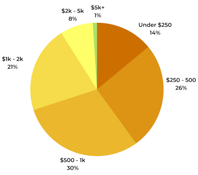 The greatest portion of shoppers — 30% — plan to spend between $501-$1,000. Just over a quarter (26%) will spend $251-$500, and total holiday spending for 21% of shoppers will be between $1,001 and $2,000. 14% plan to spend less than $250, and 9% will spend more than $2,000.