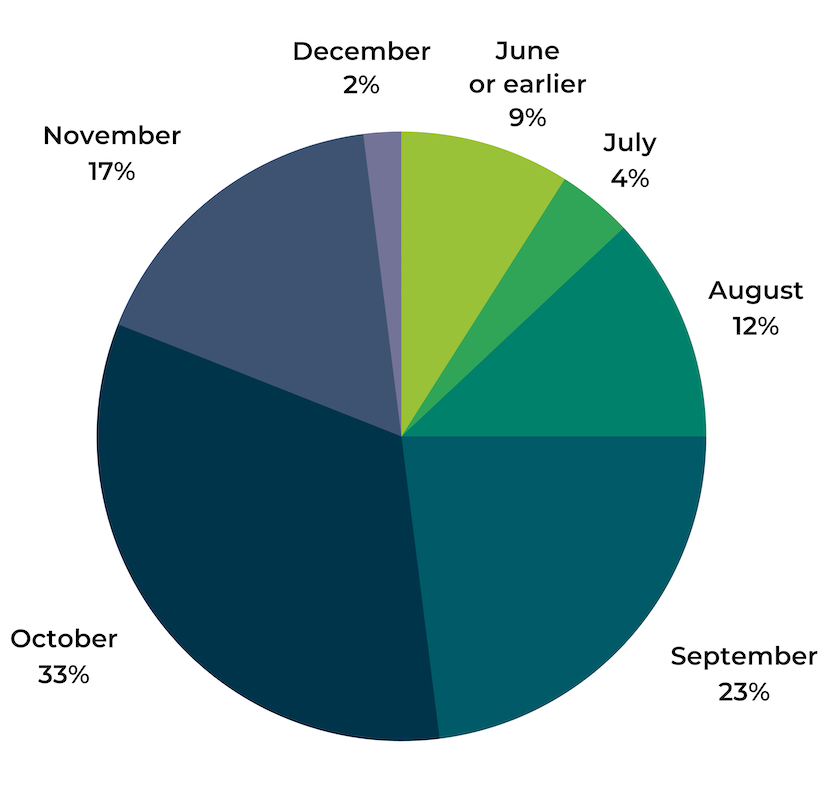 This year, a smaller percentage of consumers plan to start their holiday shopping earlier than usual. Last year, consumers were concerned about COVID-related shipping delays and altered their shopping timeline to account for this. However, this seems to be less of a concern this year.