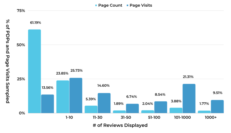 The chart highlights the percentage of total PDPs that exist of those we analyzed with the corresponding review volumes at the time the data was pulled.