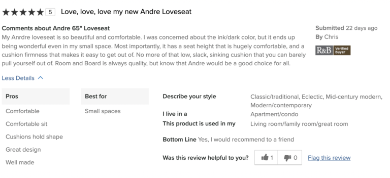 If a product only has glowing reviews, it can raise suspicions that the brand or retailer is suppressing negative content. So while it’s important to moderate content for fraud and appropriateness, never suppress a review simply because it’s negative.