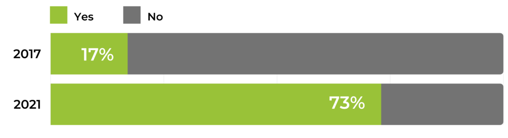 Our research found that nearly three-quarters (73%) of consumers have purchased grocery items online in the past three months. In comparison, a mere 17% of consumers answered yes to this question in 2017.