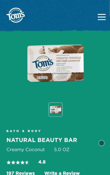 This CPG brand displays the average star rating and review count right at the top of each product page, enticing shoppers to click through to the entire review display.