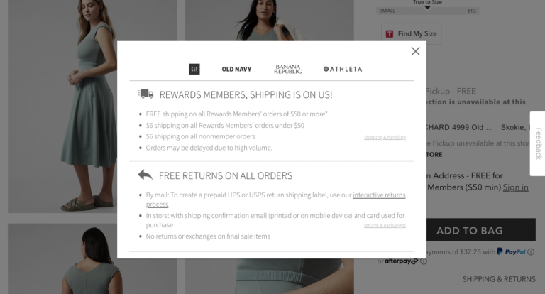 In order to increase conversion, brands and retailers must make shipping and returns information prominent on product pages.