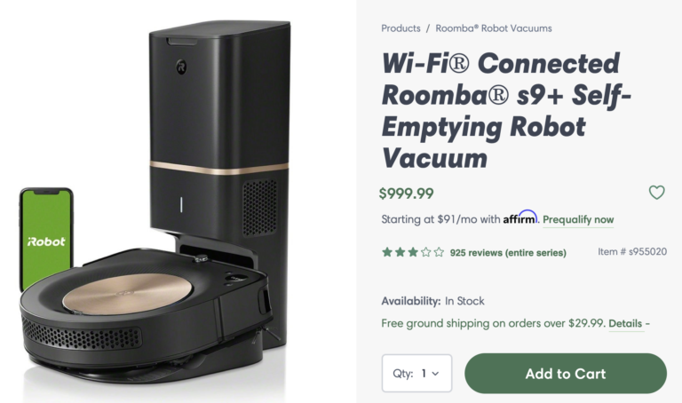This electronics brand is also very transparent about pricing. Shoppers can clearly see that the item is $999.99, includes free shipping, and can be paid for in $91 monthly installments.