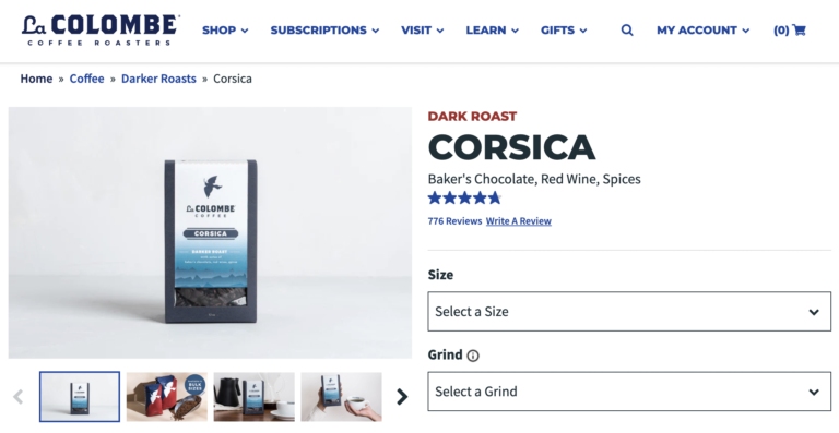 The title on this product page for coffee lets the shopper know the type of roast – as well as the flavors it has. If the shopper is a fan of baker’s chocolate, red wine, and spices, they’ll scroll on to learn more. Otherwise, they’ll take their search in a different direction.