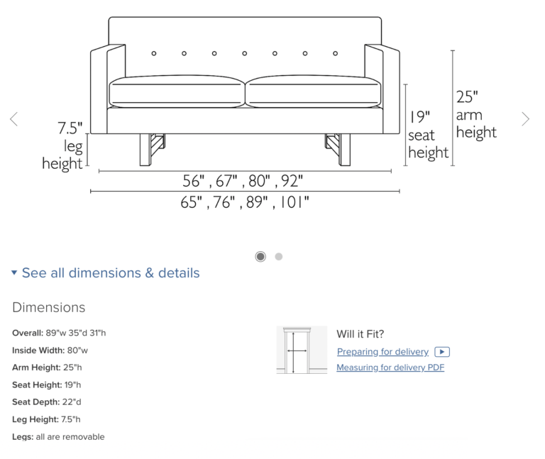 Room & Board is another example of a home retailer that makes it easy for shoppers to visualize the size of an item.