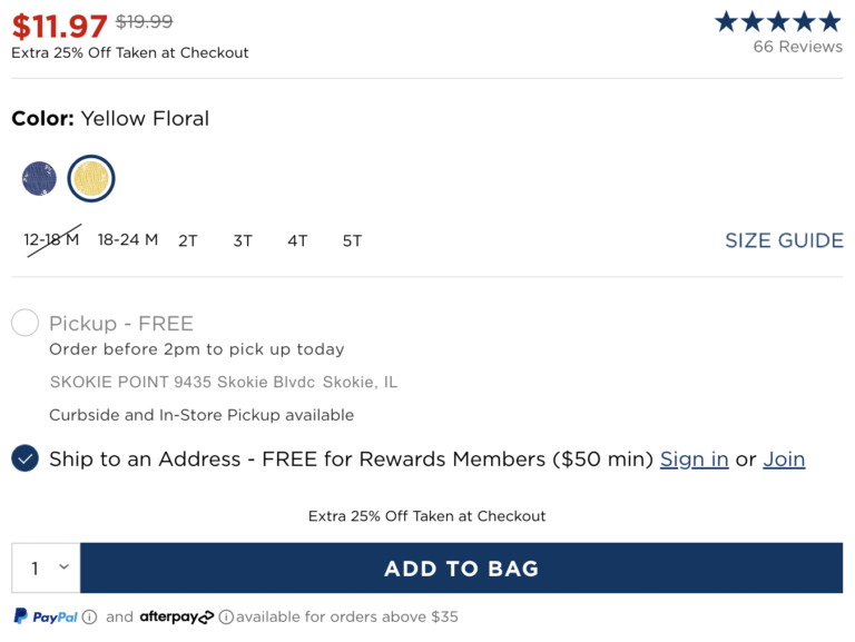 This specialty retailer includes an entire section on product pages devoted to shipping information. This section lets shoppers know how quickly items leave the warehouse and how long transit time is, based on the selected shipping method. They also include a list of addresses they’re not able to ship to, which can eliminate frustration during the checkout process.