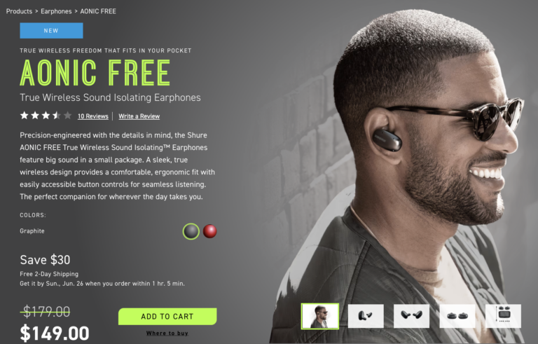 This electronics brand makes it clear that buyers will get free two-day shipping. They even go so far as to display the exact date the item will arrive.