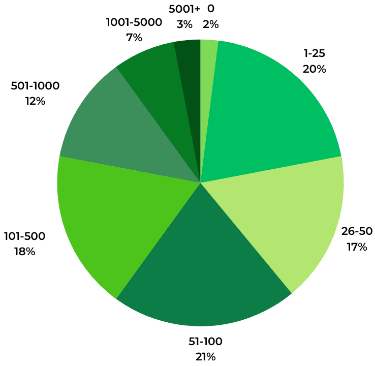 The largest portion (35%) of consumers say the minimum number of reviews a clothing item needs to have falls between one and 25. However, a significant portion – 23% – say their minimum is 101 or more.