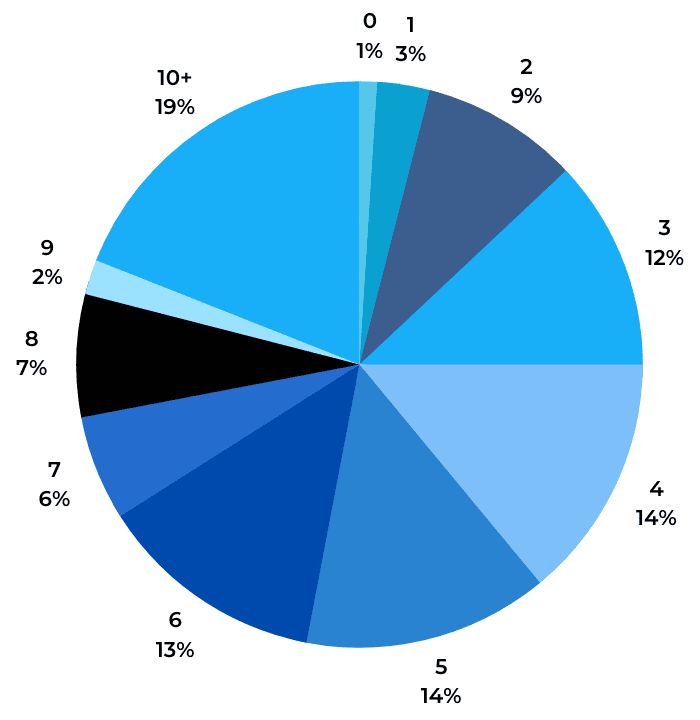 Many consumers are avid shoe-buyers. The largest portion (19%) have added 10 or more pairs to their collection in the last year. 14% purchased 4 pairs, and another 14% purchased 5 pairs.