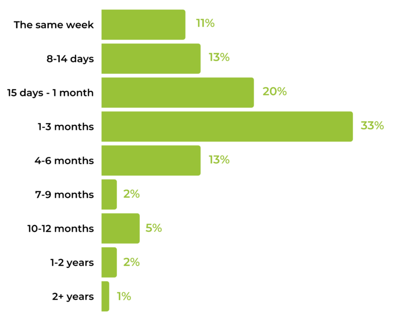 Over a third of those we surveyed (38%) indicated that if all reviews for a product were published three months ago or more, they’d be more likely to purchase a different product from a competitor with more recent reviews. If all the reviews were even older (published 1 year ago or more), the percentage of consumers who would consider an alternative product jumps to 62%.