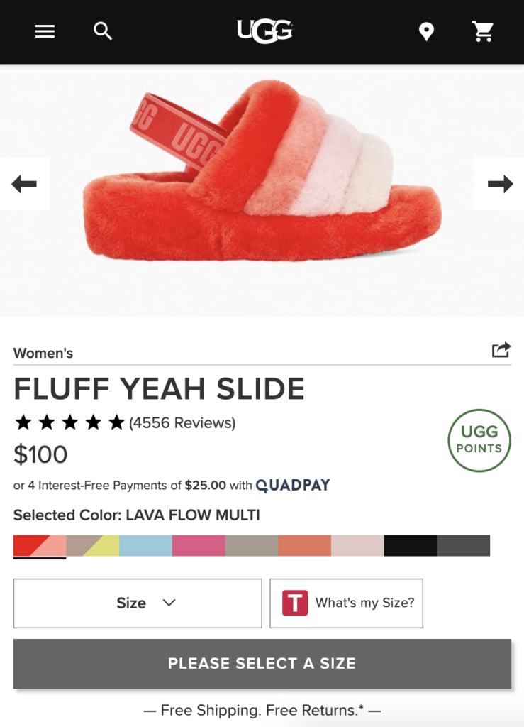 If you’re looking for a retailer with a solid Q&A foundation, check out global footwear mega brand UGG. The retailer has 34 questions in its Q&A for its 5-star rated Fluff Yeah Slide. Shoppers can ask a question, sort responses by various criteria – newest, oldest or most answers – and also search by keyword.