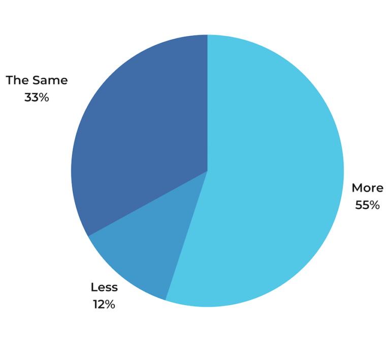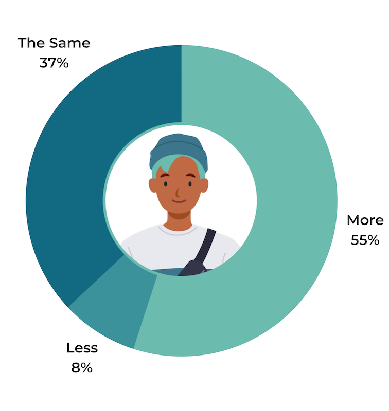 For example, in 2020, 67% of shoppers said they’d be more comfortable in-store if other customers were required to wear masks. But this number dropped to 55% this year.