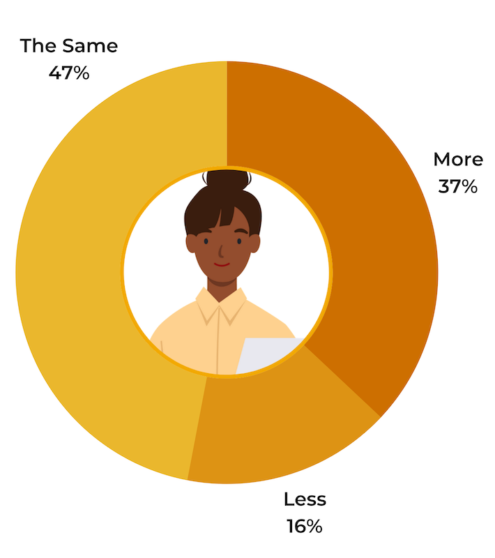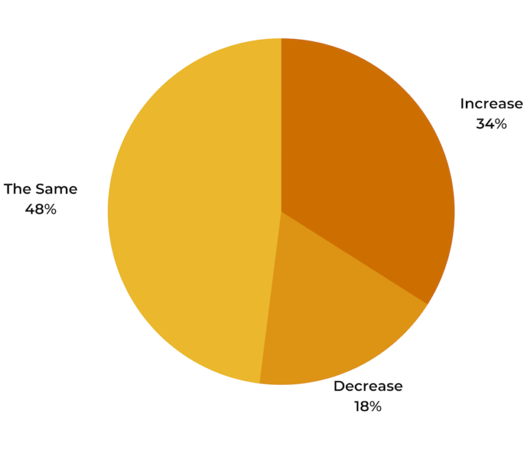 The largest portion of shoppers — 48% — plan to spend the same amount during the upcoming holiday season as they did last year. Just over a third (34%) plan to increase their total holiday spending, up significantly from 2020 when 19% of shoppers said this was the case.