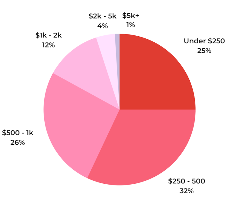 The greatest portion of shoppers — 30% — plan to spend between $501-$1,000. Just over a quarter (26%) will spend $251-$500, and total holiday spending for 21% of shoppers will be between $1,001 and $2,000. 14% plan to spend less than $250, and 9% will spend more than $2,000.