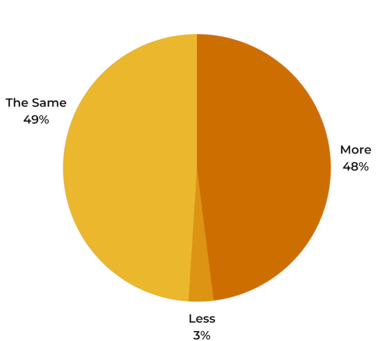 This year, nearly half (48%) of shoppers indicate that ease and speed of shipping will have a greater impact on their purchase decisions compared to last. 49% say it’ll have the same amount of impact, and for a mere 3%, shipping ease and speed will have less of an impact on holiday purchase decisions this year compared to last.
