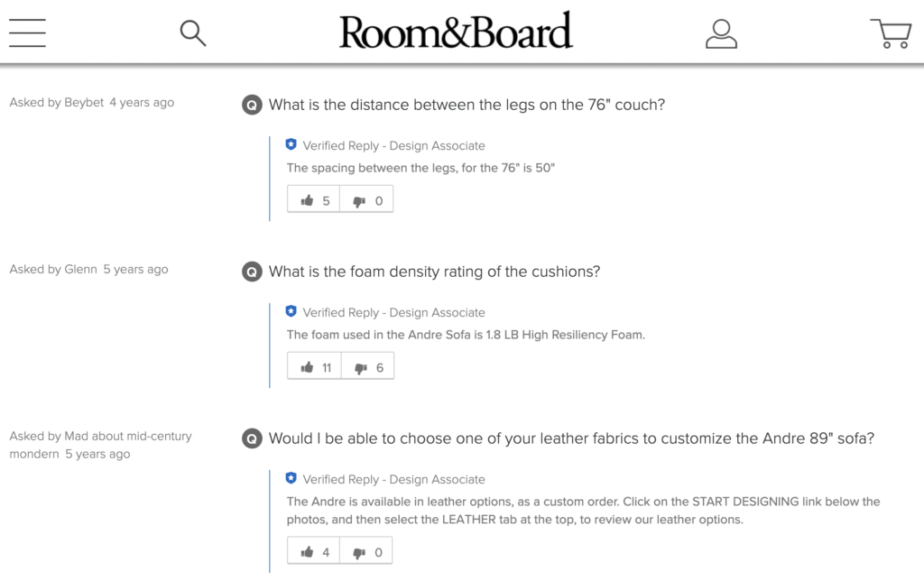 Consumers value answers from other shoppers who have already purchased a product significantly more than answers from brands or retailers. So start allowing your current customers to answer the questions posed by prospective customers. Hearing about the experiences of fellow consumers will build your shoppers’ confidence — and the likelihood that they’ll make a purchase.