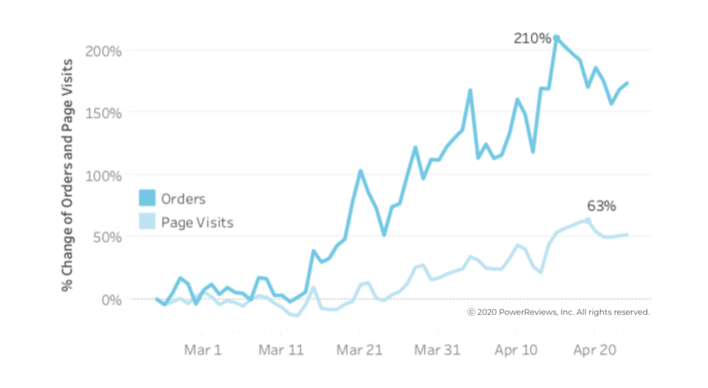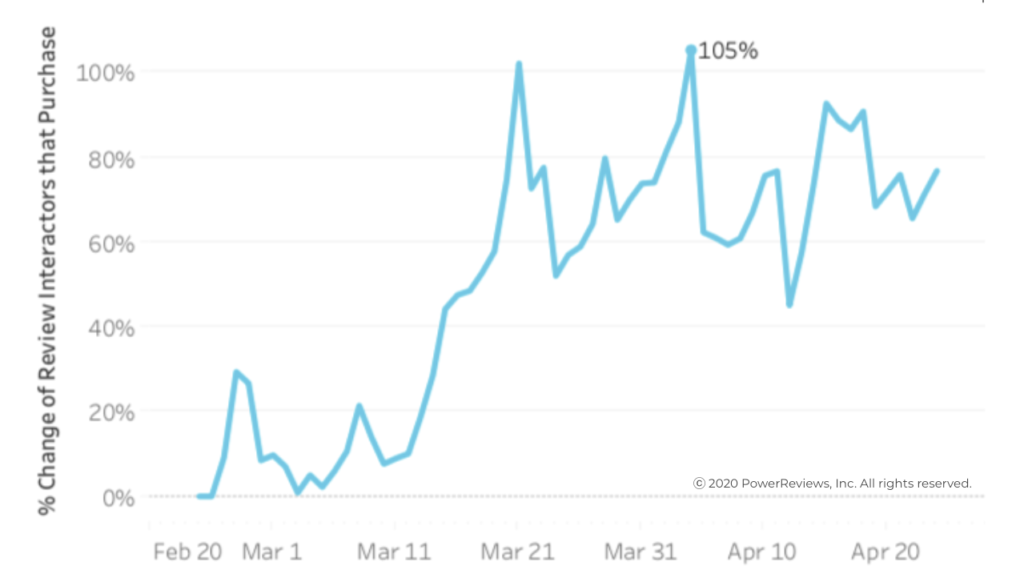 PowerReviews research is based on analysis of activity across more than 1.5MM product pages from more than 1,200 retail/brand sites between February 24, 2020 and April 24, 2020.