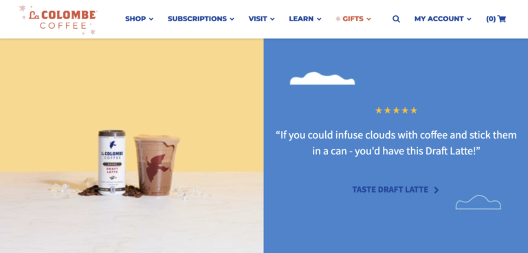 “When we were planning our Summer Tour campaign to promote our new Draft Lattes in cans, we noticed one reviewer said the mouthfeel is like being on a cloud, and we were so inspired by this that we designed our web page to feature this review front and center.